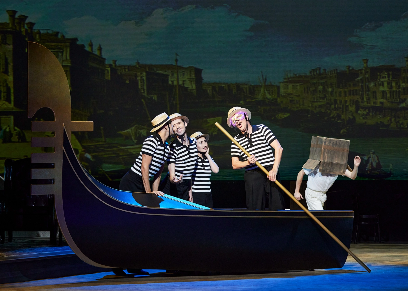 „Extravagante Kostüme, geheimnisvolle Masken, ausgelassene Stimmung und jede Menge Liebesverwirrungen – das ist der venezianische Karneval. Oder besser gesagt: Die verklärten Erinnerungen des Herzogs Urbino an seine letzte Nacht in Venedig.“